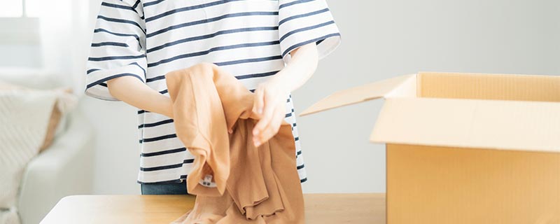 ダンボール箱や袋に衣類を詰め、宅配伝票を貼ってお送りください。